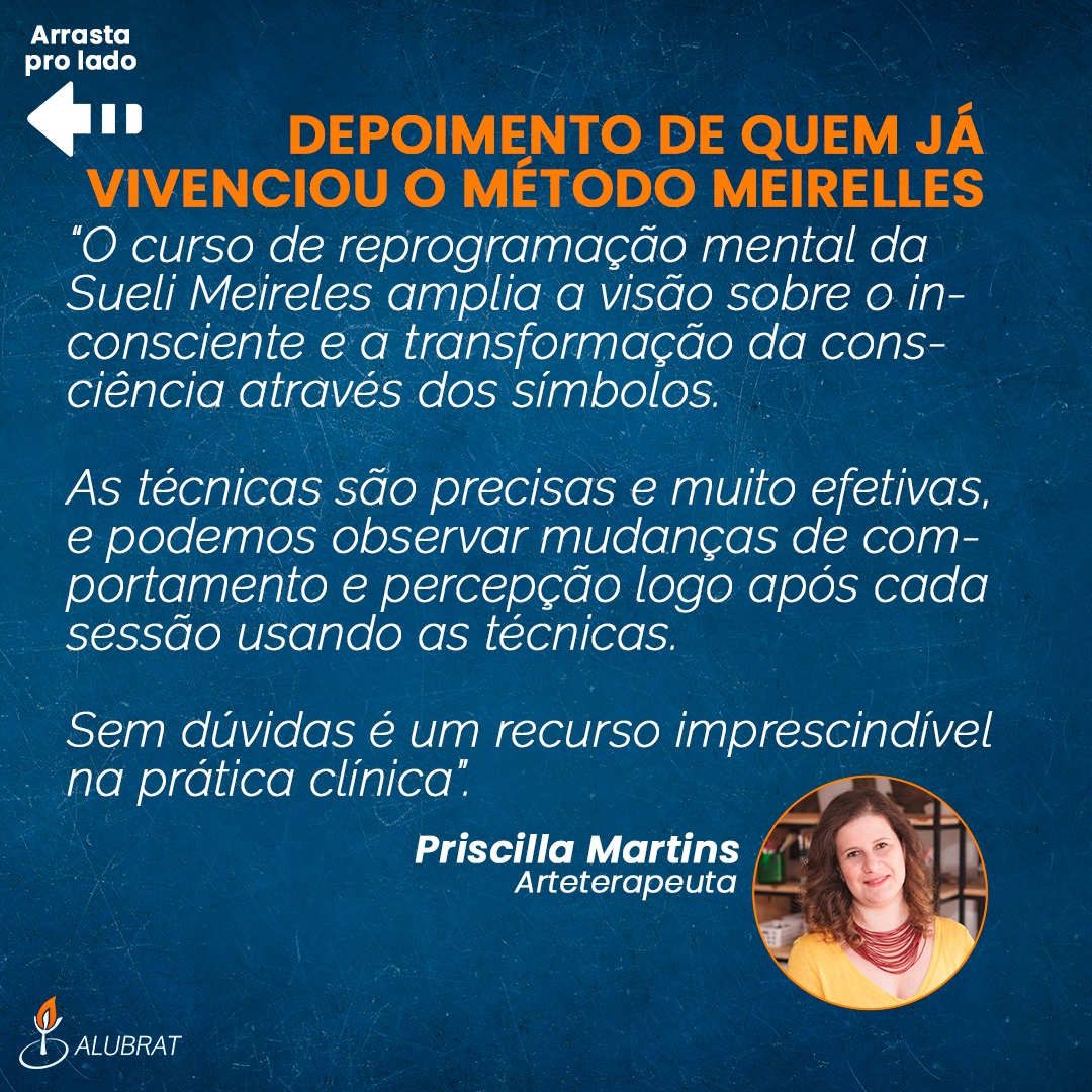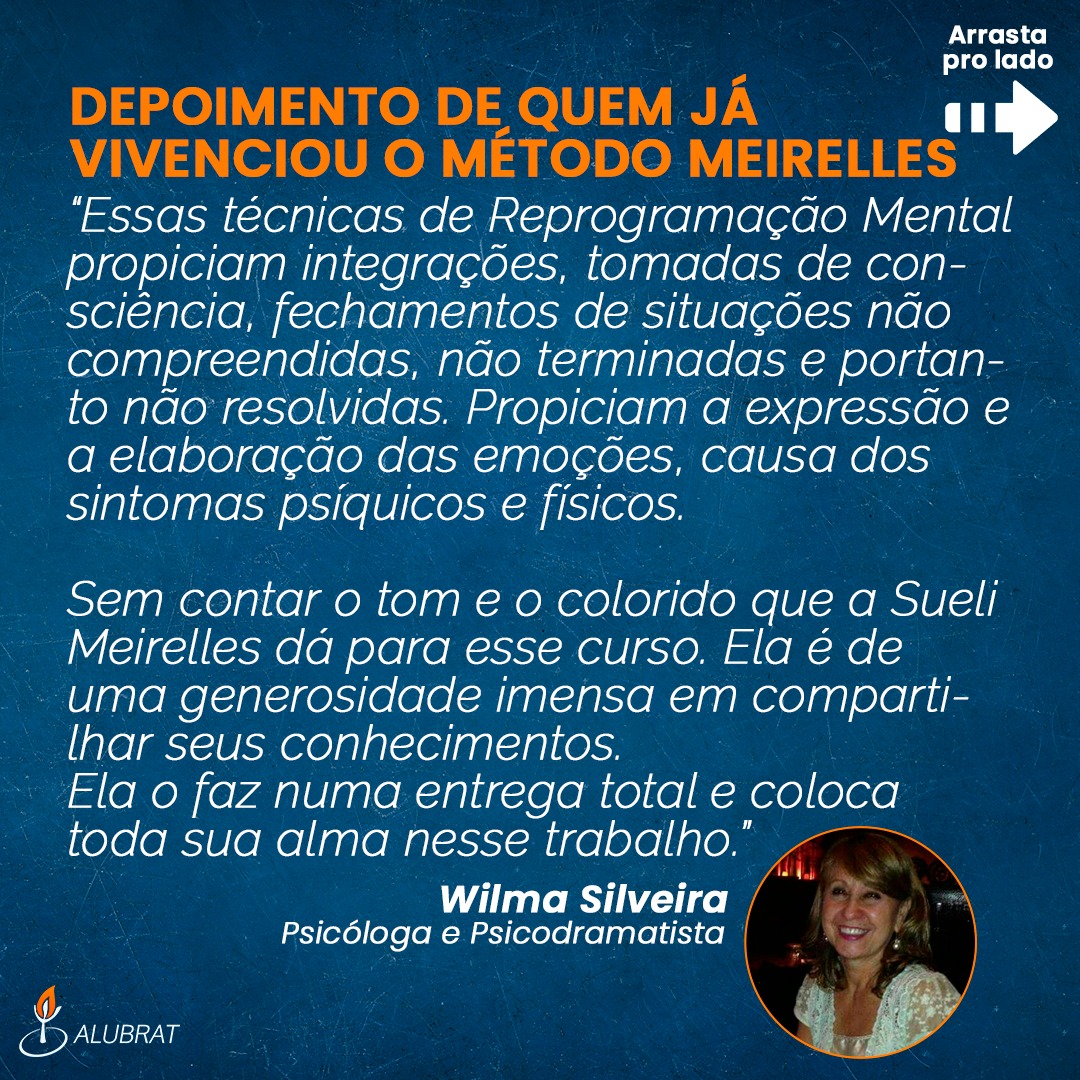 Sueli Meirelles selecionou as técnicas mais produtivas da Abordagem Transdisciplinar em Psicoterapia (Movimento de Síntese entre a Psiconeurolinguística, Bioenergética, Gestalt-Terapia, Psicologia Transpessoal, Física Quântica e Tradições Sapientais da Humanidade), criando um método próprio e bem sucedido: MÉTODO MEIRELLES DE REPROGRAMAÇÃO MENTAL.